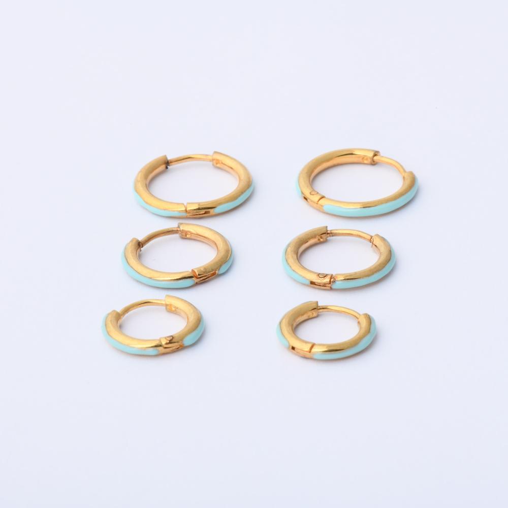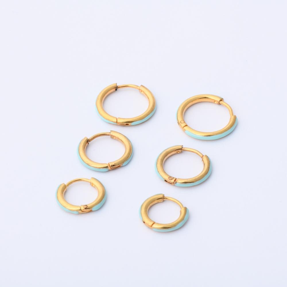 حلق استيل ثلاث قطع دائرية لون سماوي