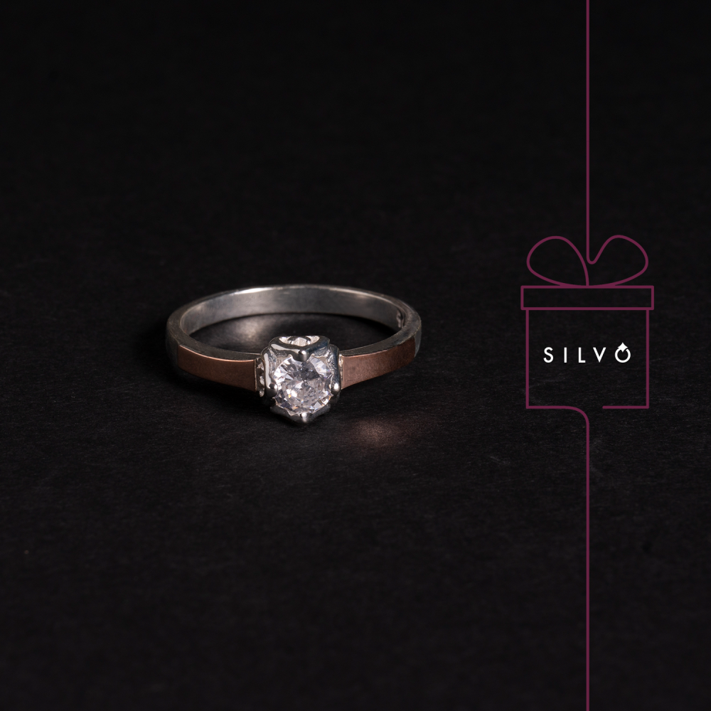 خاتم فضة عيار 925 بقطعة من حجر الزركون اللامع.